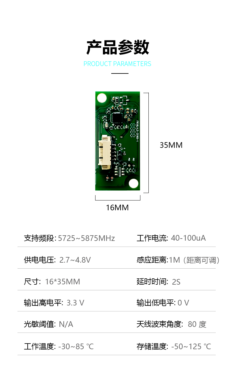 FR58L4LS-3516D-1 是飛睿智能推出的高性能 5.8G 雷達(dá)傳感器,雷達(dá)模塊利用多普勒原理,通過天線發(fā)射高頻電磁波并接收初期反射波,以此判斷覆蓋范圍內(nèi)物體的移動(dòng),給出相應(yīng)電信號(hào)。模塊尺寸 35*16MM,該模塊集成度高且生產(chǎn)一致性好。雷達(dá)模塊不受溫度、濕度、氣流、灰塵、噪聲、亮暗等影響。廣泛應(yīng)用于智慧照明、智能門鎖、智慧安防、智慧家電等多個(gè)領(lǐng)域。